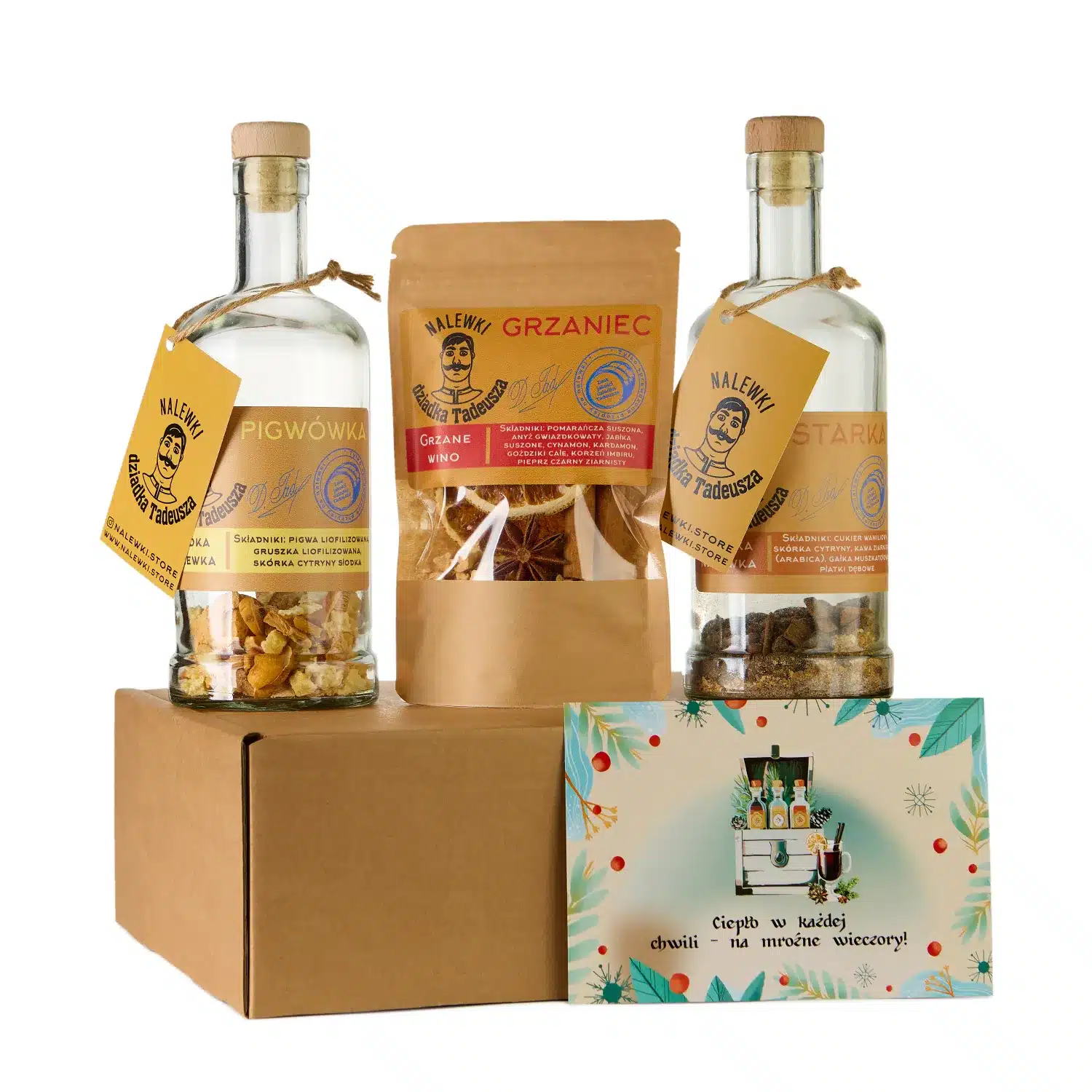 Zestaw zimowych nalewek to doskonały pomysł na upominek – idealny dla każdego, kto uwielbia odkrywać nowe smaki i cieszyć się domowymi trunkami. Pozwól swoim bliskim eksperymentować z aromatycznymi nalewkami, które rozgrzeją zimowe wieczory i dodadzą wyjątkowego uroku spotkaniom w gronie przyjaciół i rodziny. Podaruj prezent, który będzie nie tylko kulinarną przygodą, ale także miłym gestem, wyrażającym troskę i życzliwość!